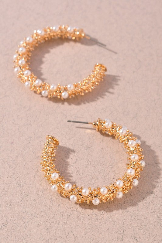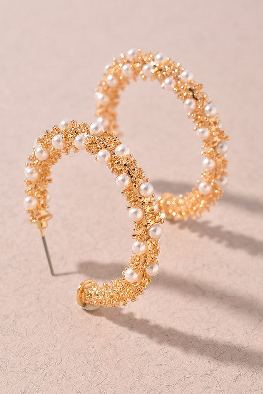 Regular price $14.99 Save $-14.99Featuring delicate pearl accents intertwined with a gold-tone metal frame, these hoops are perfect for elevating casual outfits or adding a touch of sophistication to evening wear.