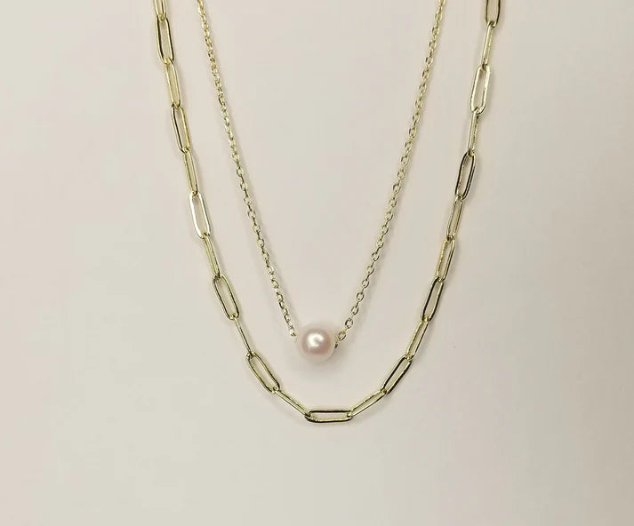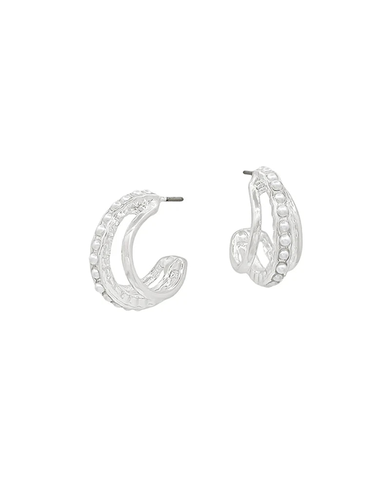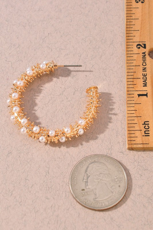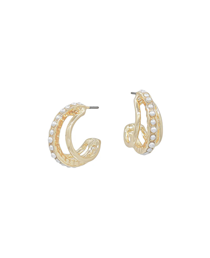 1" Layered Pearl Accent Hoop Earring - Available in Silver and Gold