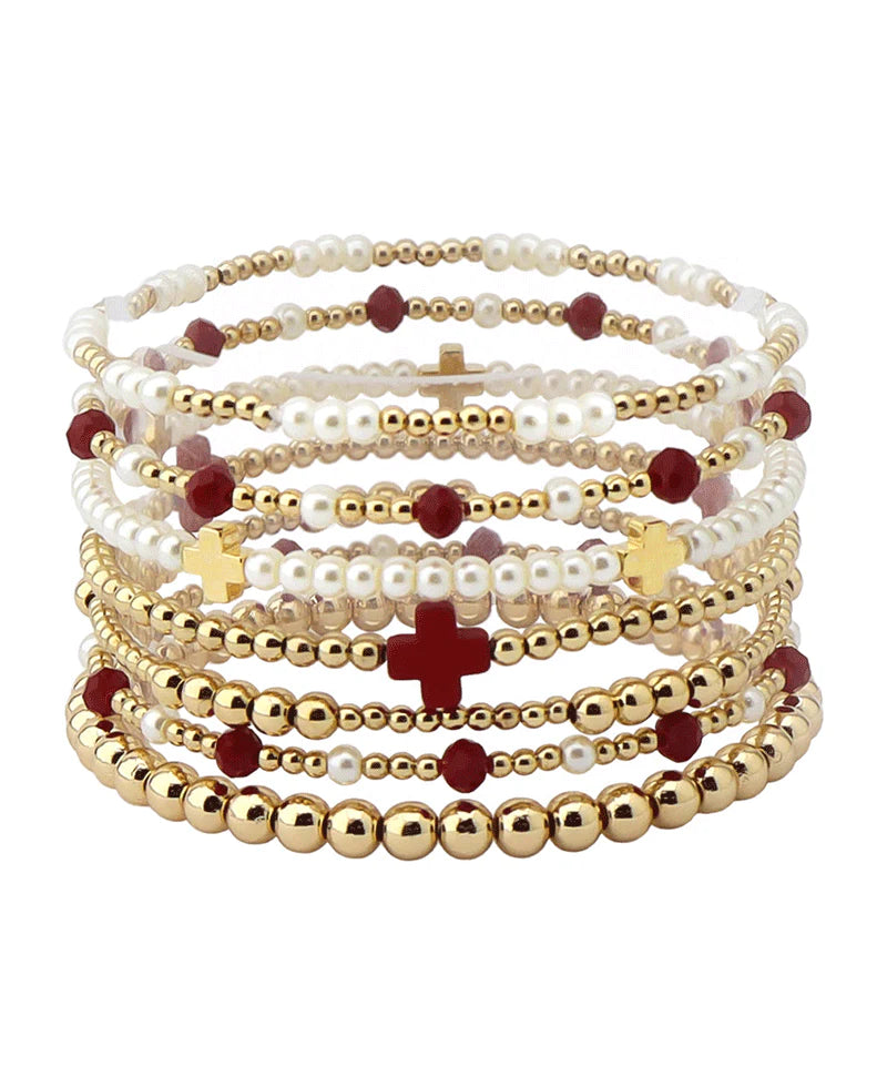 Cross Accent Multi Bead Bracelet - Available in Red and Green