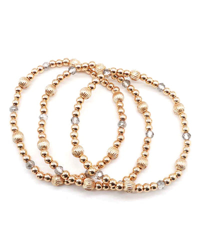 Regular price $14.99 Save $-14.99Set of 3 stretch bracelets featuring gold and gray beads.