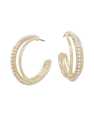 1.5" 3 Layered Pearl Accent Hoop Earring