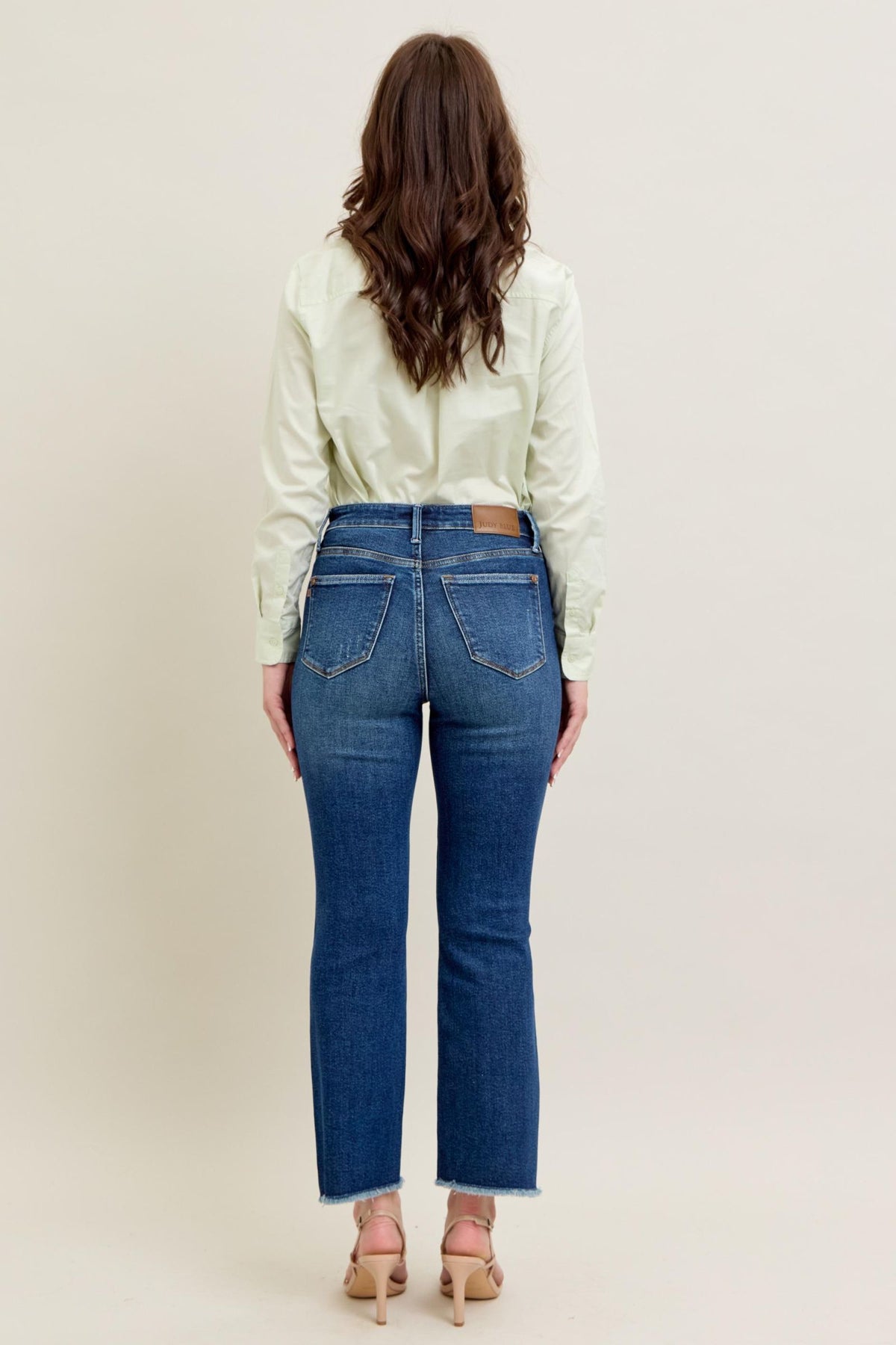 JUDY BLUE High Waist Shark Bite Hem Skinny Jean - Available in Misses and Plus Sizes