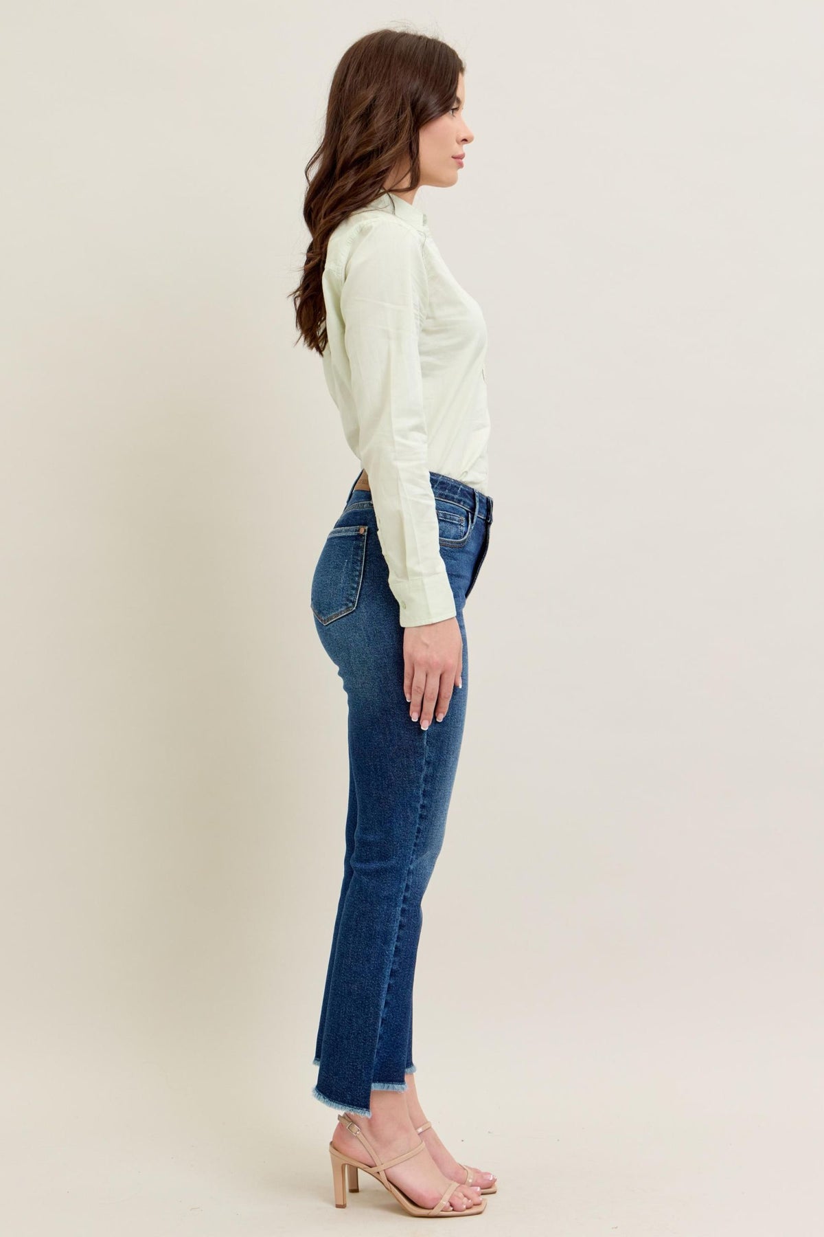 RISEN Tummy Control Elastic Band High Rise Crop Straight Jean