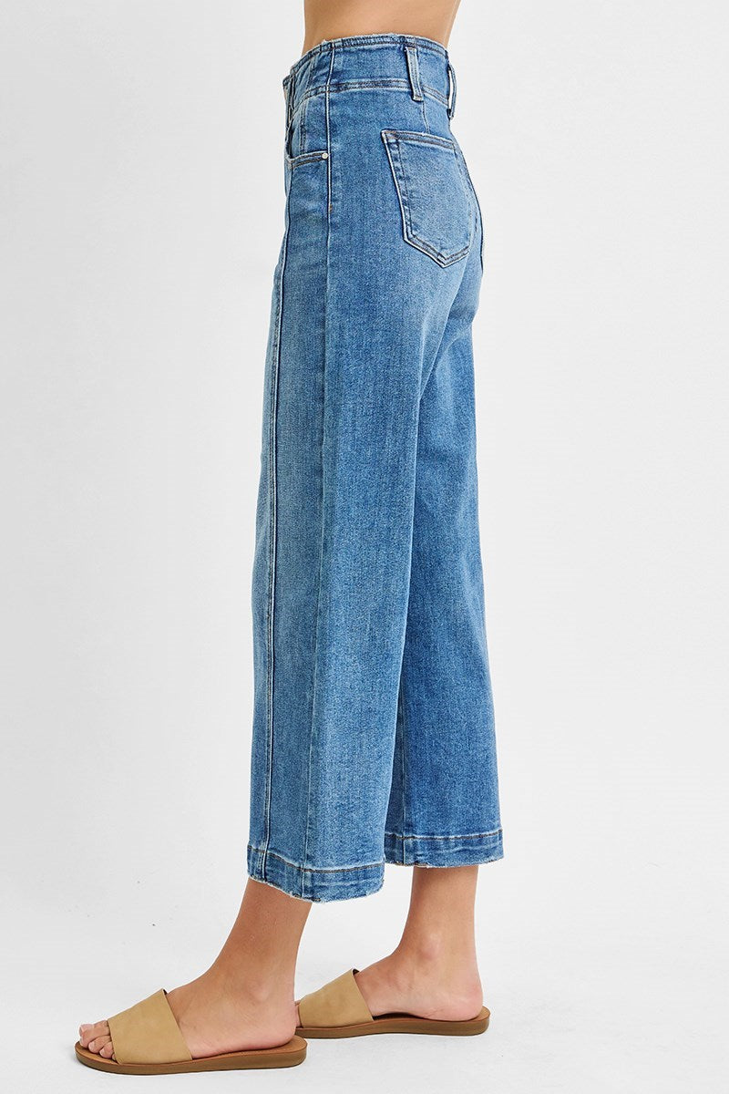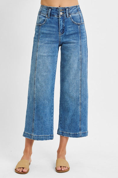 RISEN High Rise Crop Wide Leg Front Seam Detail Jeans