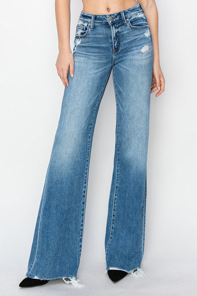 Risen Slouchy Mid Rise Wide Baggy Leg Jeans - Available in Regular and Plus Sizes