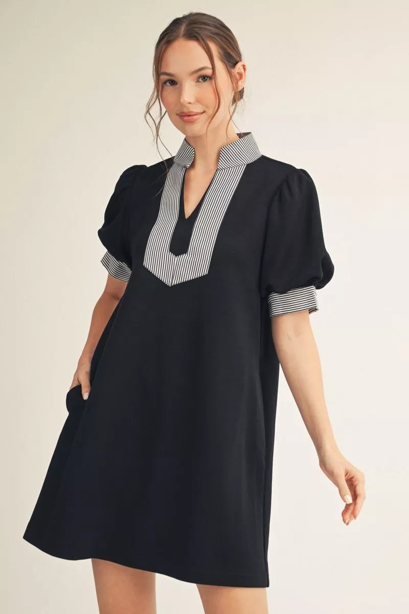 Regular price $56.00 Save $-56.00This midi dress features a longer length with short sleeves and a simple, relaxed silhouette. Designed with an allover striped pattern, it offers a classic look that’s easy to wear and style. The clean shape keeps it versatile, making it suitable for casual days or more put together moments. Pair it with flats, sandals, or sneakers for an easy outfit that feels comfortable and timeless.