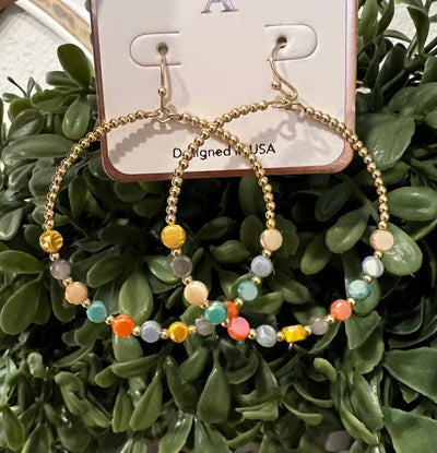 Multi Colored Beaded Accent Earring - Multiple Colors Available