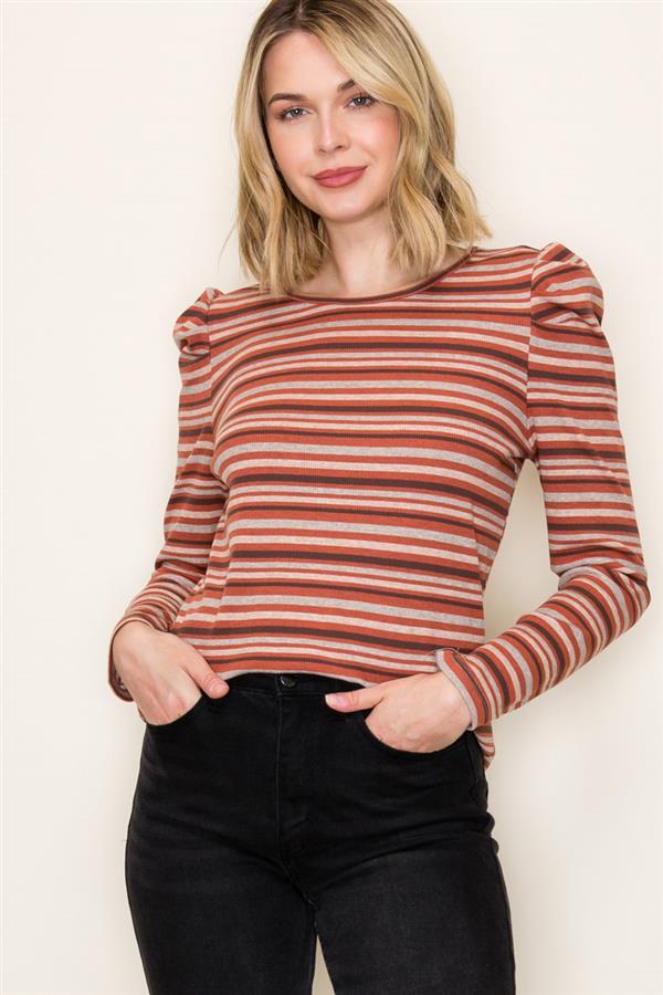 Regular price $36.00 Save $-36.00This fitted, puff sleeve, baby ribbed knit tee is the perfect color combination for the season!