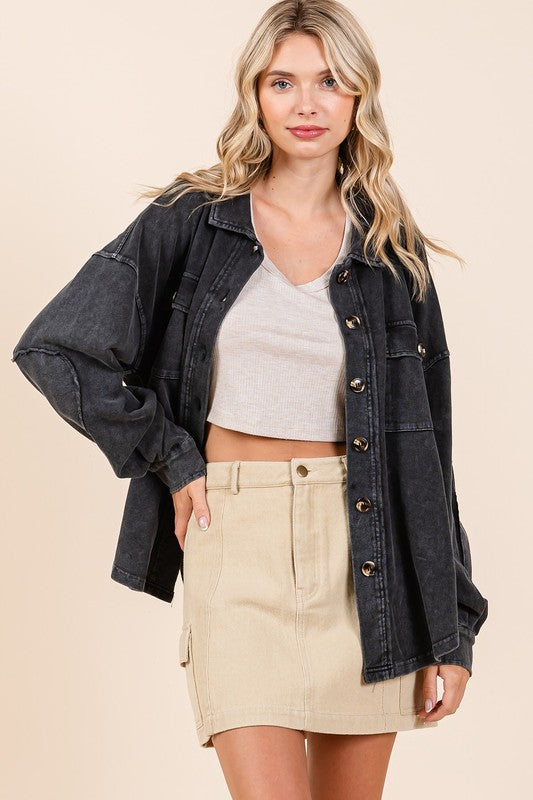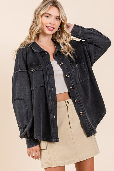 Mineral Wash French Terry Elbow Patch Shacket