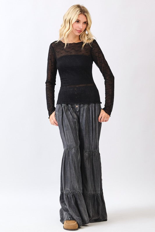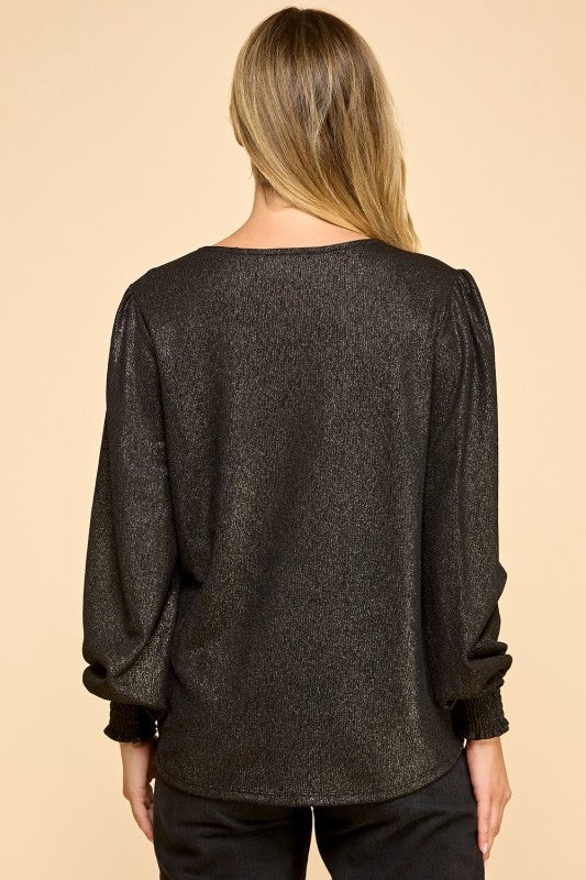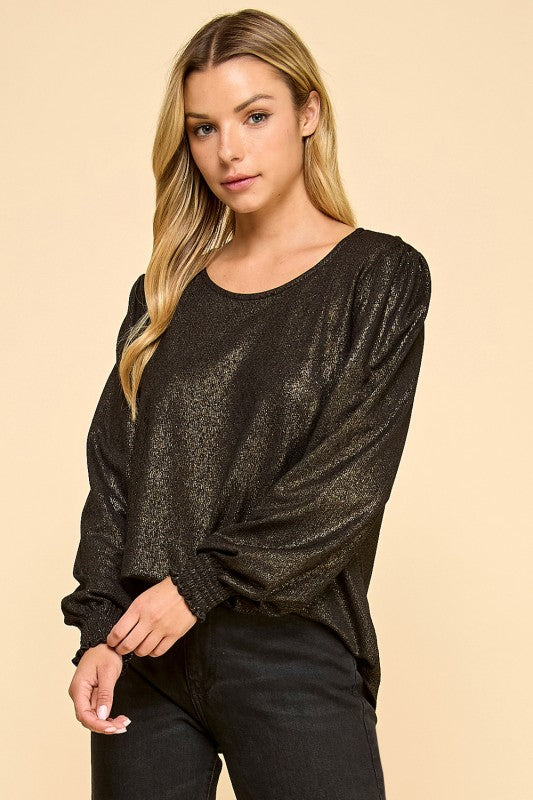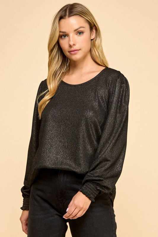 Black Champagne Shimmer Long Sleeve Top