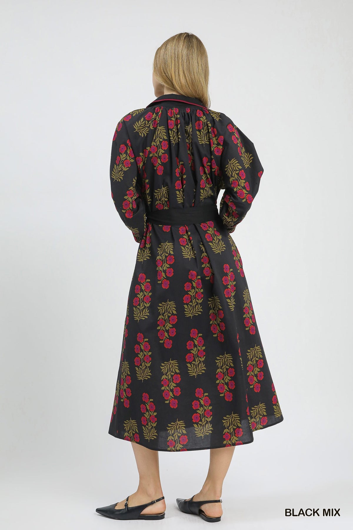 Regular price $69.00 Save $-69.00Floral Button-Front Maxi Shirt Dress with Waist Tie
