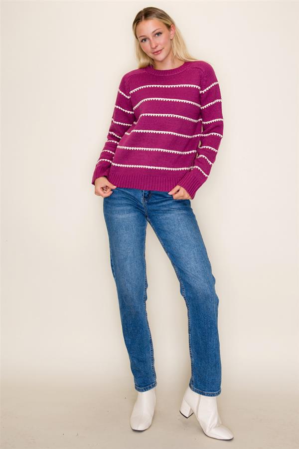Pop of Color Blanket Stich Sweater