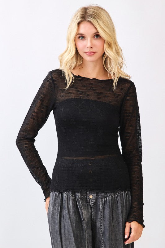 Regular price $28.00 Save $-28.00Lace Textured Long Sleeve Top