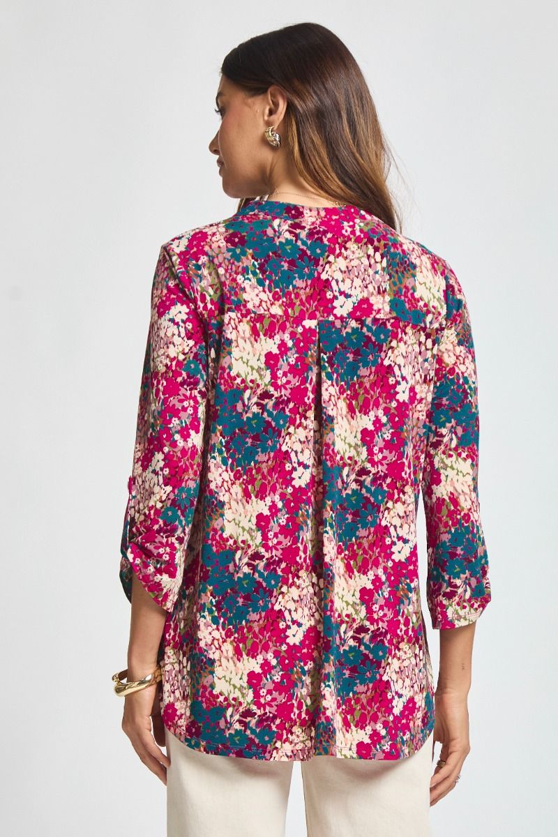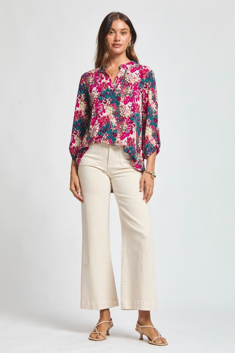 The Lizzy 3/4 Sleeve Top in Wine Magenta