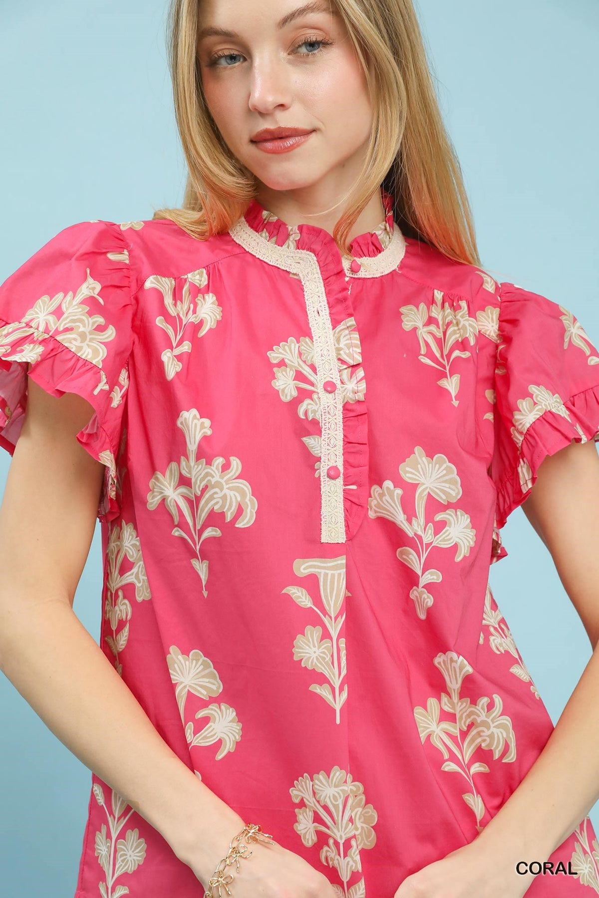 Regular price $29.00 Save $-29.00Floral Printed Top with Short Ruffled Sleeves