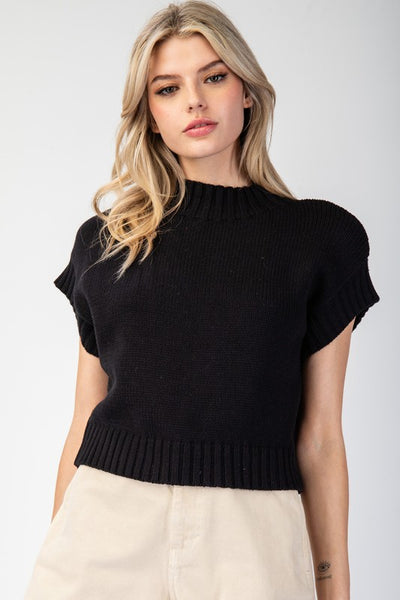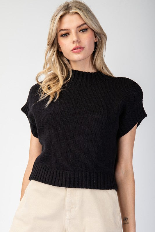 The Amanda Ribbed Mock Neck Cap Sleeve Sweater