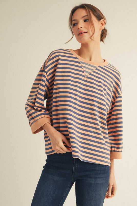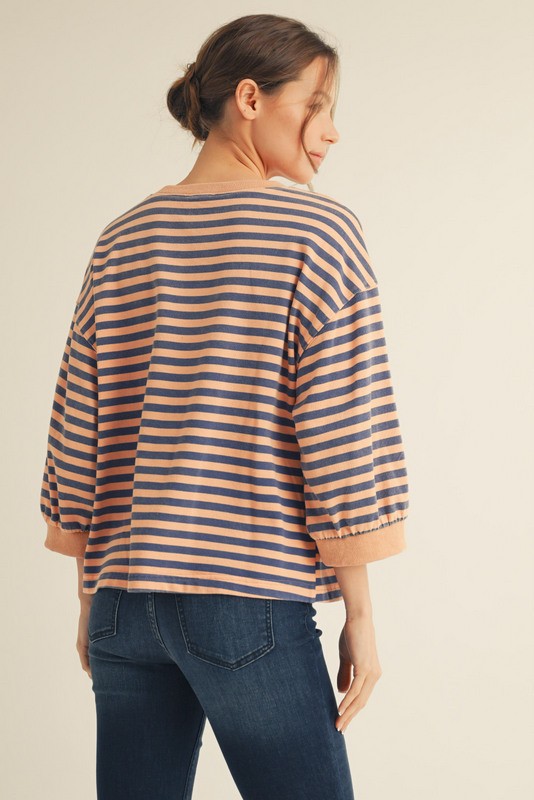 Regular price $46.00 Save $-46.003/4 sleeves casual stripe top with v-notched detail. - Model is 5'10'' and is wearing a Small.