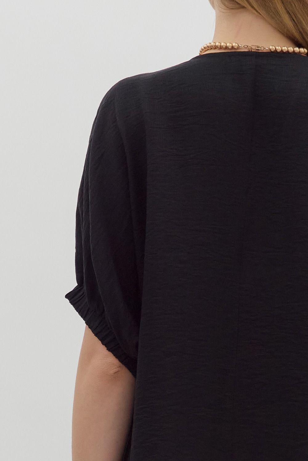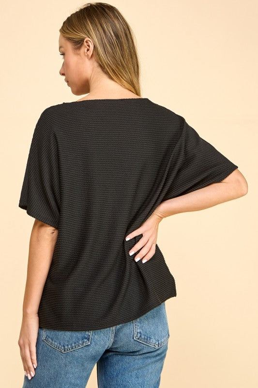 Regular price $44.00 Save $-44.00Solid dolman top featuring V-neck accent with braided detail.