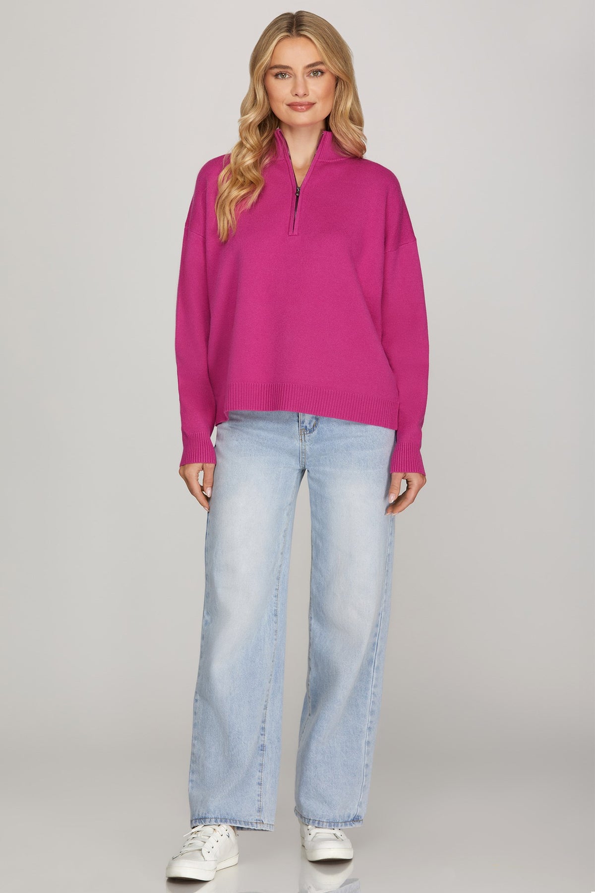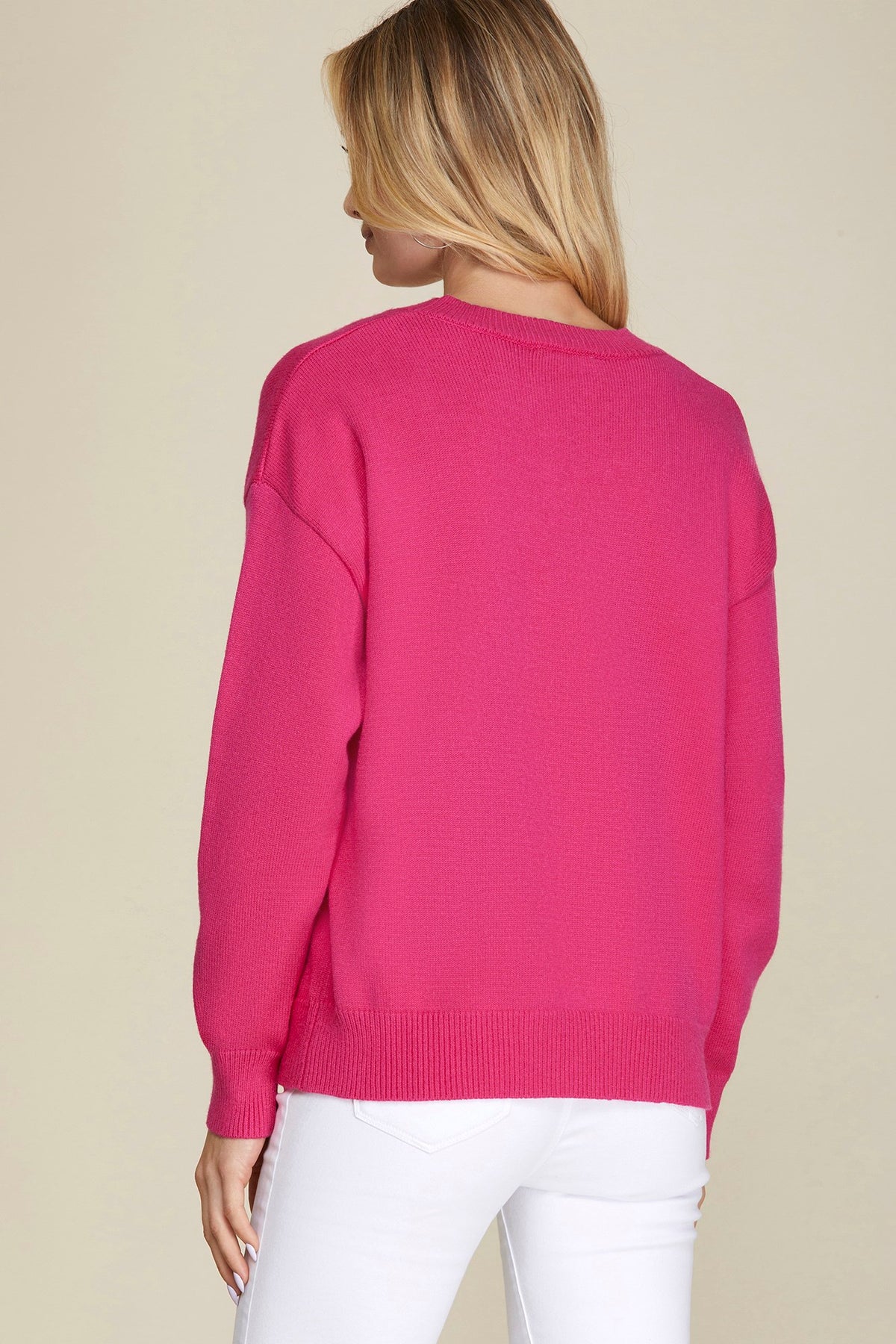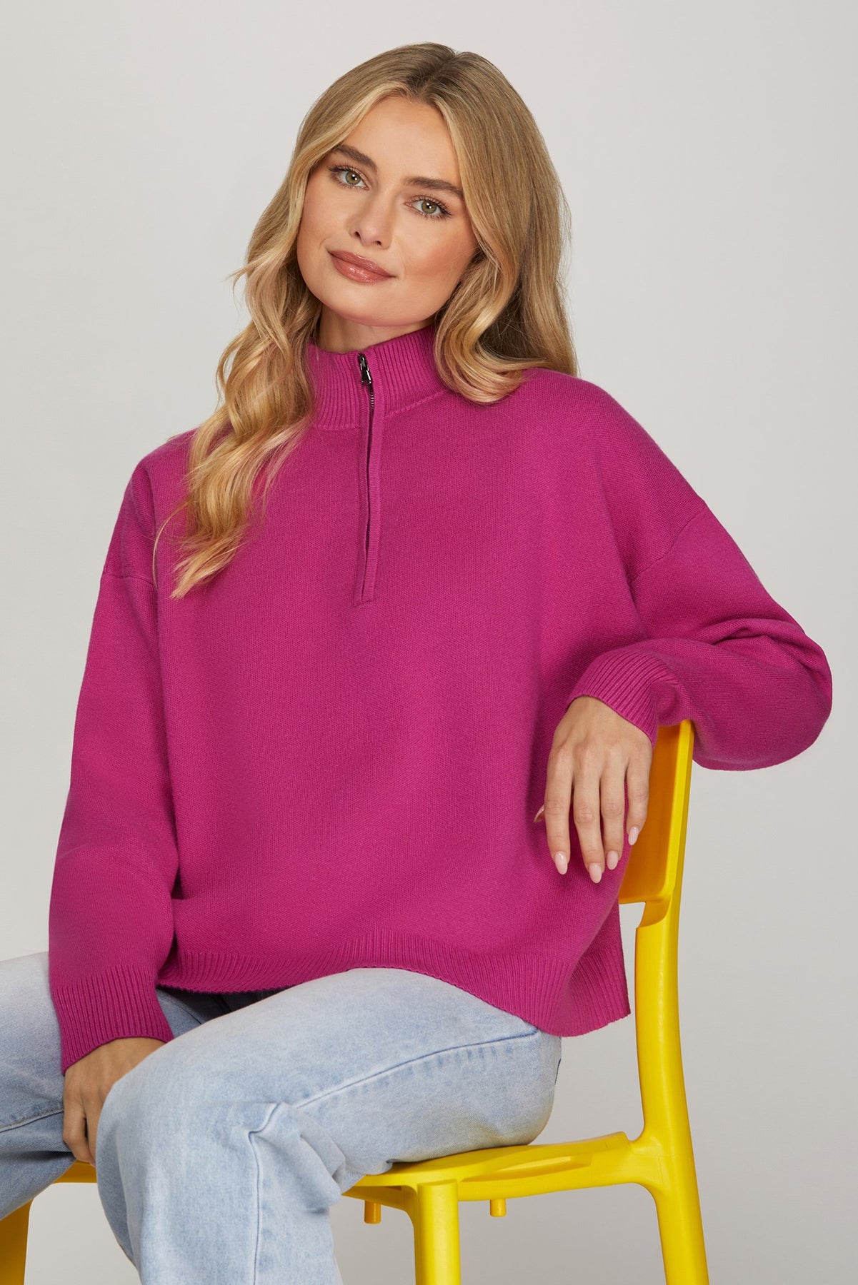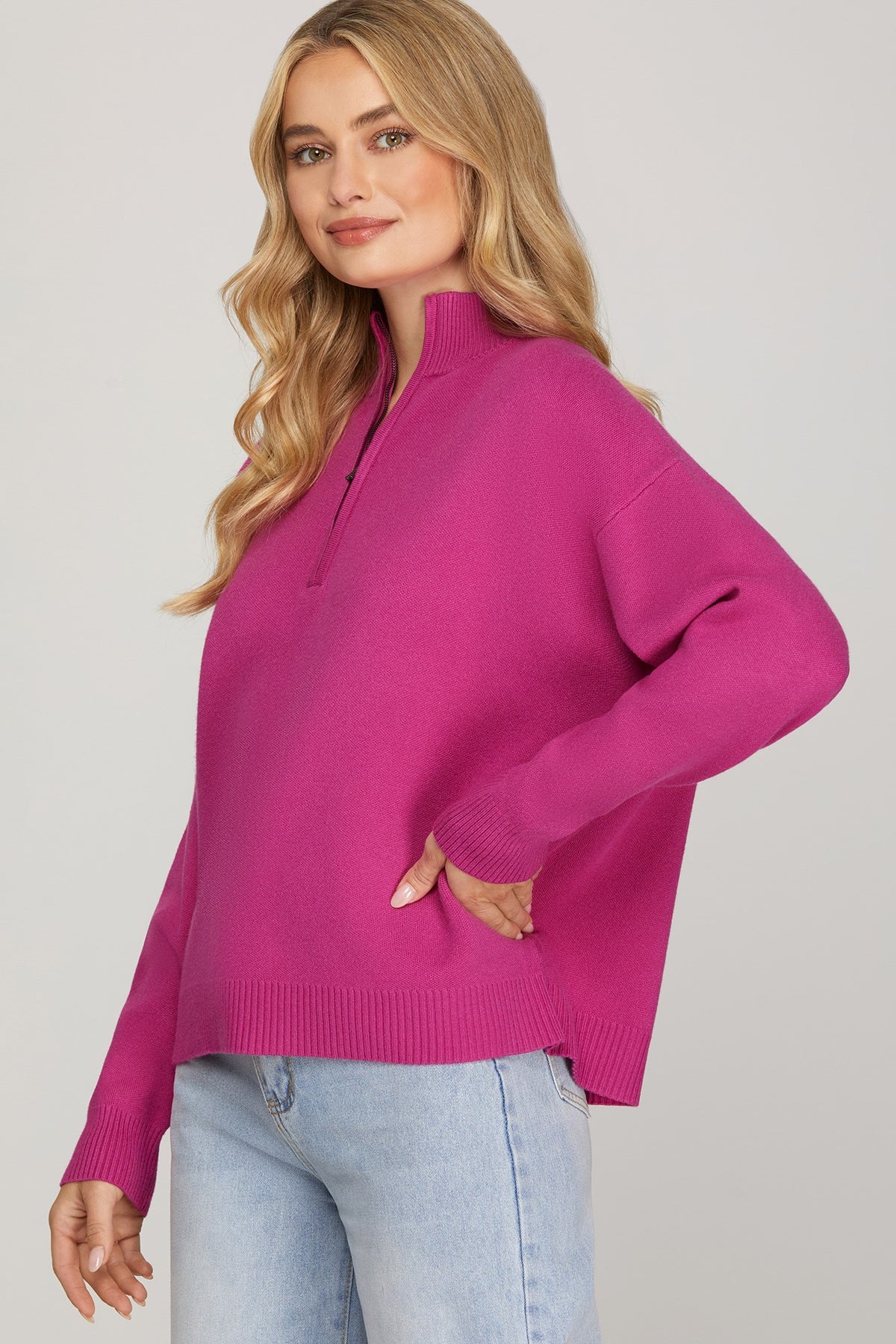 Regular price $48.00 Save $-48.00Get ready to fall head over heels for this fuchsia long sleeve sweater! It's got that perfect cloud-like softness that makes you never want to take it off, paired with just the right amount of weight to keep you cozy without the bulk. The gorgeous fuchsia shade brings instant personality to your closet and pairs beautifully with everything.