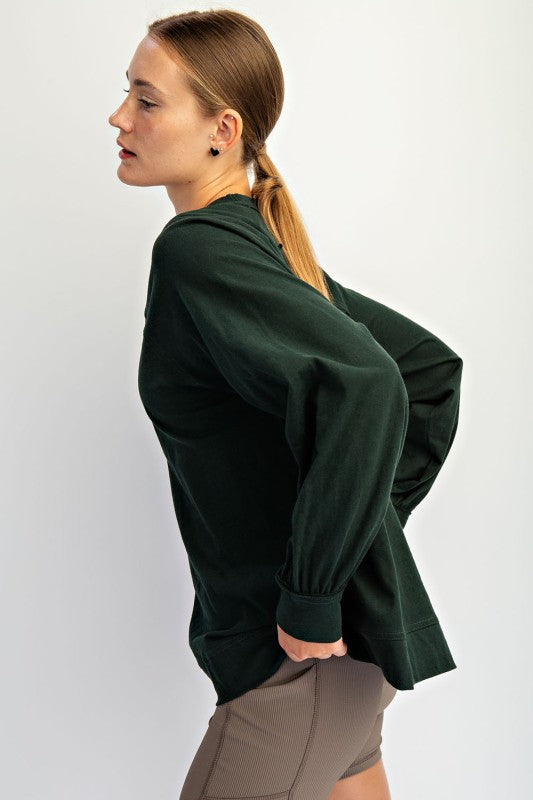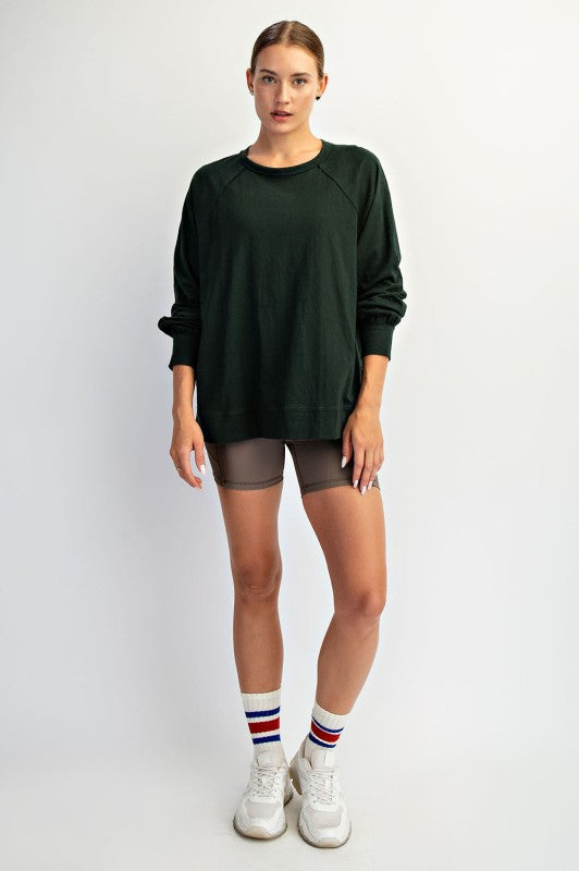 Hunter Green Oversized Cotton Slub Long Sleeve Tee